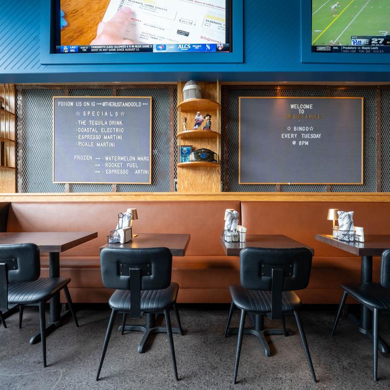 Located in the heart of Huntington, NY, The Rust & Gold offers a vibrant, welcoming atmosphere with rustic-chic decor and a lively crowd. Specializing in craft cocktails and local beers, it’s the perfect spot for casual dining, catching a game, or enjoying live music. Popular menu items include their signature Steakhouse Burgers, Brined Wings, and crispy Brussels sprouts. With a blend of great drinks, friendly service, and a dynamic vibe, The Rust & Gold is a favorite hangout for locals and visitors.