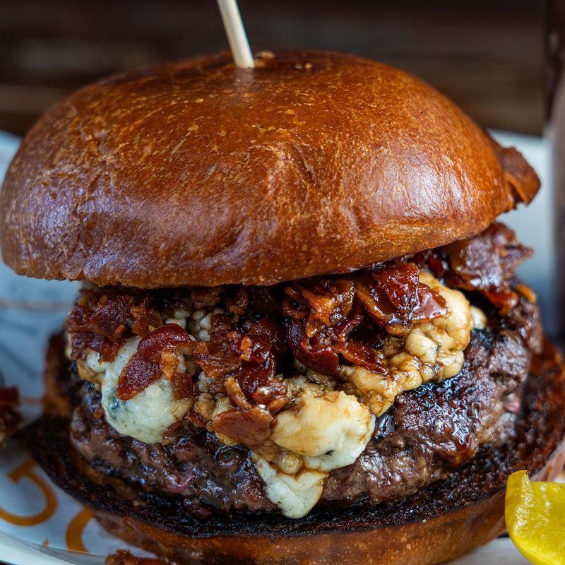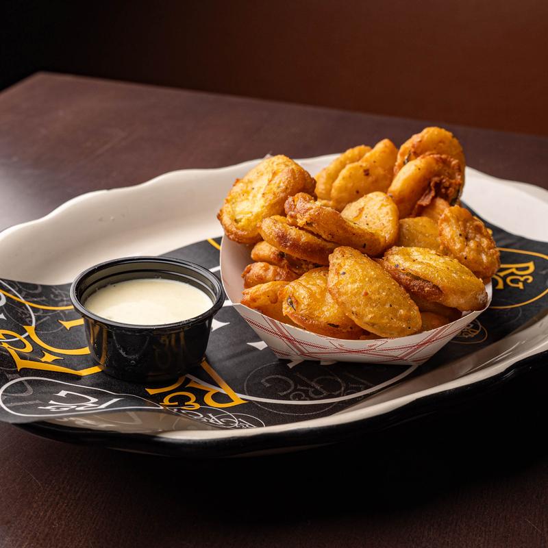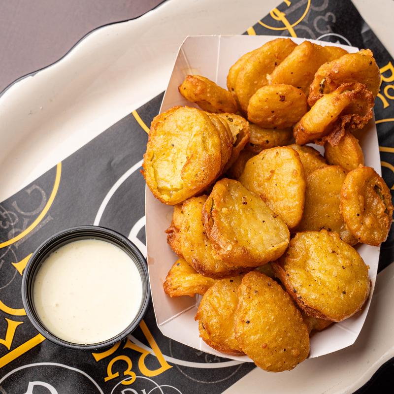 DUSTYS BBQ SMOKED PORK SHOULDER, CRISPY ONIONS, PICKLES