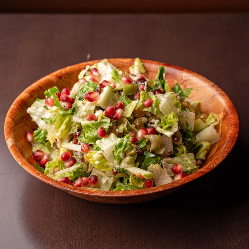 CHOPPED ROMAINE, BACON BITES, GREEN APPLE, VLUE CHEESE, POMEGRANTE SEEDS