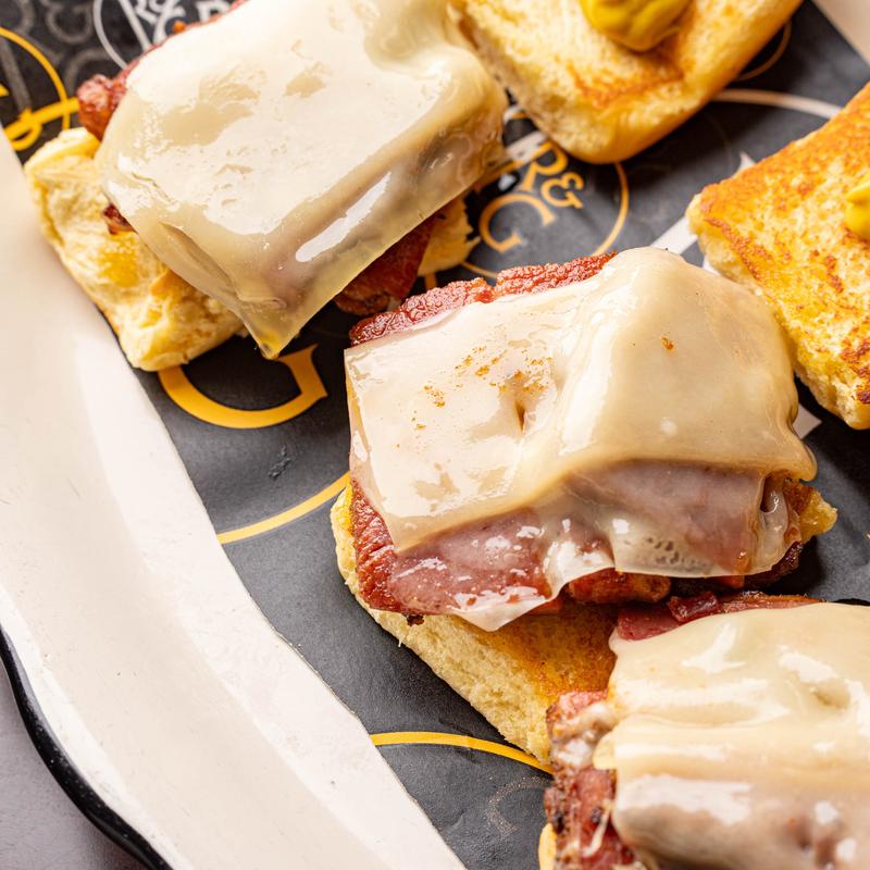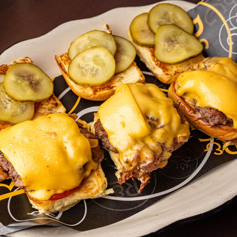 BEEF SLIDERS, AMERICAN CHEESE, PICKLES