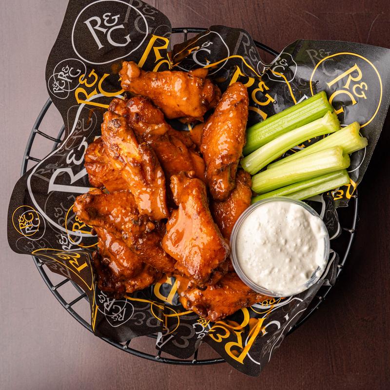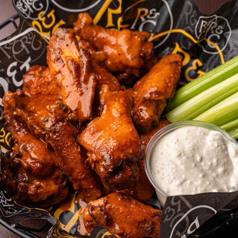 All natural jumbo wings • Naked | Classic Buffalo | Umami | Sesame Buffalo | Hellfire Habanero | Honey BBQ | Mango Chili | Chipotle BBQ | Carolina BBQ | Korean BBQ | Thai BBQ