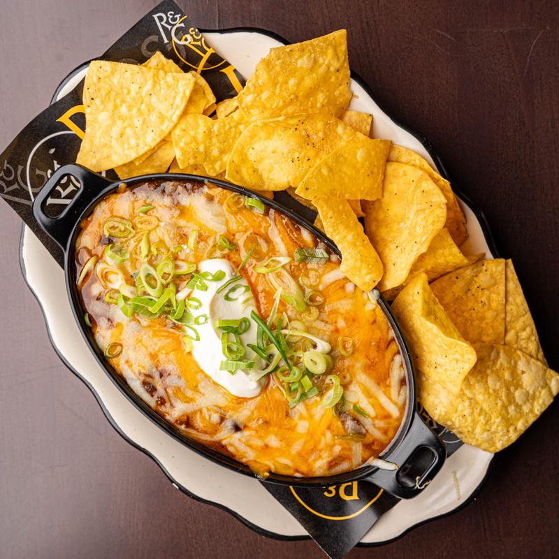 Half Tray $75.00 | Full Tray $135.00 • Jalapeno, red onion, tomato, black bean, fresh corn, R&G queso served with tortilla chips.