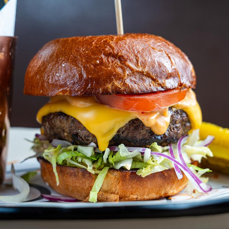 CHOPPED GROUND BEEF, AMERICAN CHEESE, LETTUCE, TOMATO, SAZON, CHEF SAUCE.